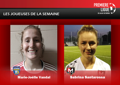 Marie-Joëlle Vandal (Dynamo de Québec) et Sabrina Santarossa (CS Monteuil) sont les joueuses de la semaine.