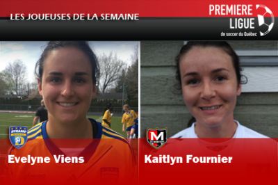 Evelyne Viens (Dynamo de Québec), pour une deuxième semaine consécutive, et Kaitlyn Fournier (CS Monteuil) sont les joueuses de la semaine.