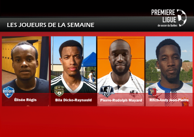 Elisée Régis (CS Fabrose), Bila Dicko-Raynauld (FC Gatineau), Pierre-Rudolph Mayard (AS Blainville) et Ritch-Andy Jean-Pierre (CS Mont-Royal Outremont) sont les joueurs de la semaine.