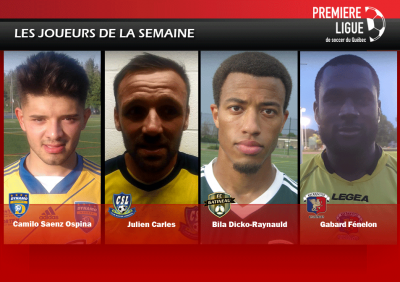 Camilo Saenz Ospina (Dynamo de Québec), Julien Carles (CS Longueuil), Bila Dicko-Raynauld (FC Gatineau) et Gabard Fénelon (CS Mont-Royal Outremont) sont les joueurs de la semaine.
