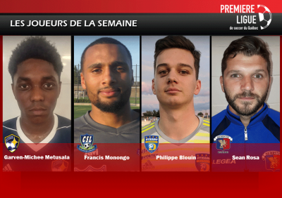 Garven-Michee Metusala (CS Saint-Hubert), Francis Monongo (CS Longueuil), Philippe Blouin (Dynamo de Québec) et Sean Rosa (CS Mont-Royal Outremont) sont les joueurs de la semaine.